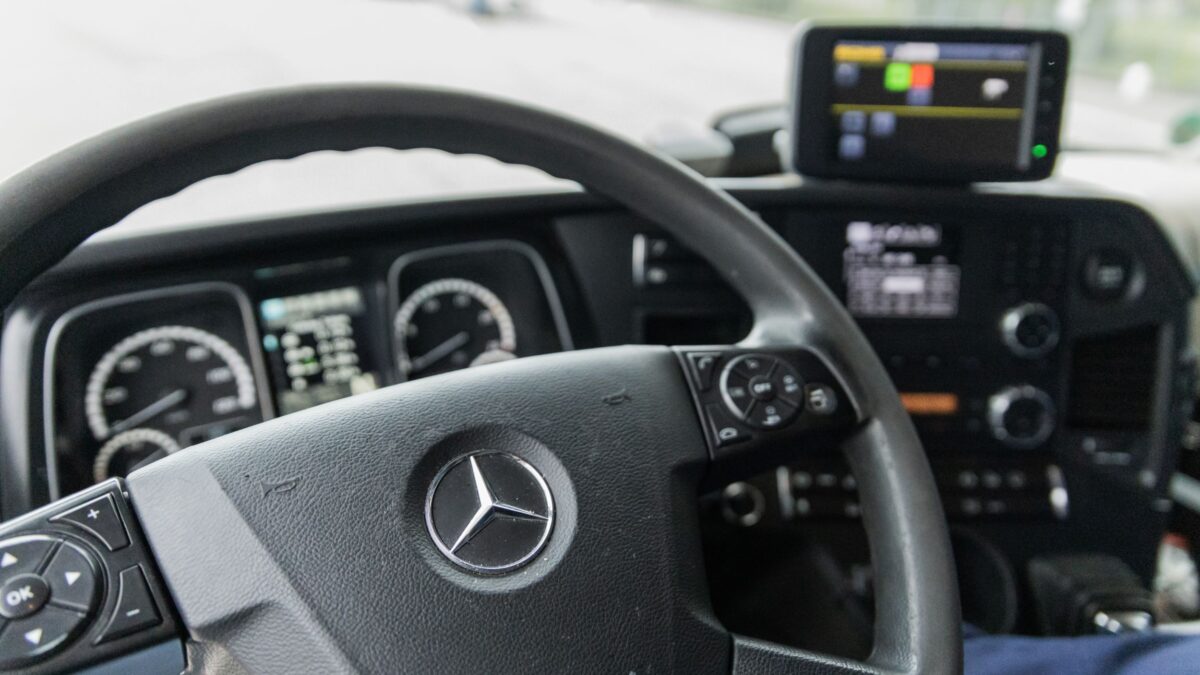 Wir arbeiten unter anderem mit speziellen Scannern, mit denen die Fahrerinnen und Fahrer ganz ohne Papierkram die zum Beladen bereitgestellte Ware dokumentieren können. Durch die Live-Verfolgung unserer LKW können wir außerdem vom Büro aus verfolgen, wo die Fahrerinnen und Fahrer unterwegs sind. So können wir ihnen beispielsweise dabei helfen, effizienter zu fahren.